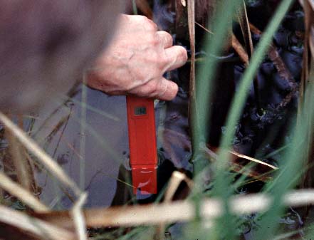 Checking the pH of a pool. This one was decidedly acid.
