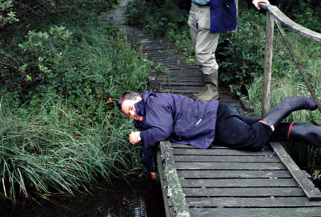 Mike putting personal comfort second to gathering suitably slimy samples. The rest of us gave him moral support, but stayed on our feet.